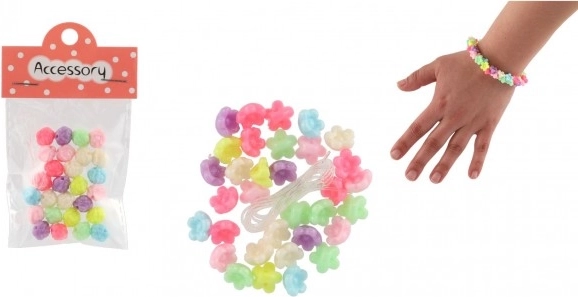 Korálky plastové kytičky se šňůrkou 2 druhy v sáčku 6,5x11x1cm