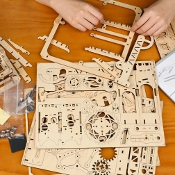 Objevte kouzlo mechaniky s dřevěnou kuličkovou dráhou ROKR Climber – precizní 3D puzzle, které propojuje krásu inženýrství, STEM učení a zábavu pro celou rodinu. Po sestavení stačí otočit klikou a sledovat, jak ocelové kuličky sviští po spirálových svazích, přes věžový rozdělovač a zvedáky v složitém systému ozubených kol.