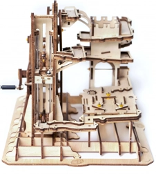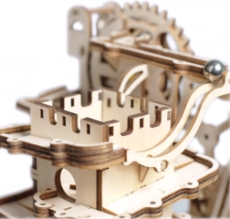 Model obsahuje věžový rozdělovač, spirálové svahy, jeřábový a kolový zvedák, krátkou skluzavku a chytře umístěné spínače, které mění dráhu kuliček. Obtížnost je hodnocena 4/5; složení zabere přibližně 6–7 hodin. Po dokončení jednoduše zatočte klikou a nechte se unést dynamickou podívanou, která názorně ukazuje principy STEM.