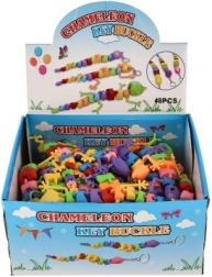 Snadno ji připnete na klíče nebo batoh díky kovovému kroužku. Dostupná v pestrém mixu barev a tvarů (ještěrka/chameleon/had).