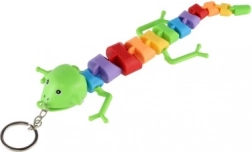 Barevná svítící klíčenka ve tvaru ještěrky, chameleona nebo hada potěší děti i dospělé. Po stisknutí tlačítka na obličeji bliká světlo v tlamě, tělo je pohyblivé a díky kovovému kroužku ji snadno připnete na klíče či batoh. Napájení zajišťují 2× LR41 (vloženy), délka 28 cm, mix barev, vhodné od 3 let.
