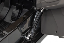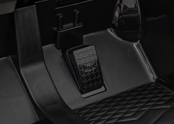 Bezpečnost a pohodlí zajišťují měkká EVA kola s výborným tlumením, sedadlo z eko kůže s propracovaným prošíváním a dálkové ovládání 2,4 GHz se třemi rychlostmi a nouzovým tlačítkem STOP. Světelný paket s předními a zadními LED světly dodává na realističnosti. Multimediální panel nabízí Bluetooth, USB, MP3, předinstalované melodie a AUX vstup pro připojení telefonu nebo přehrávače.