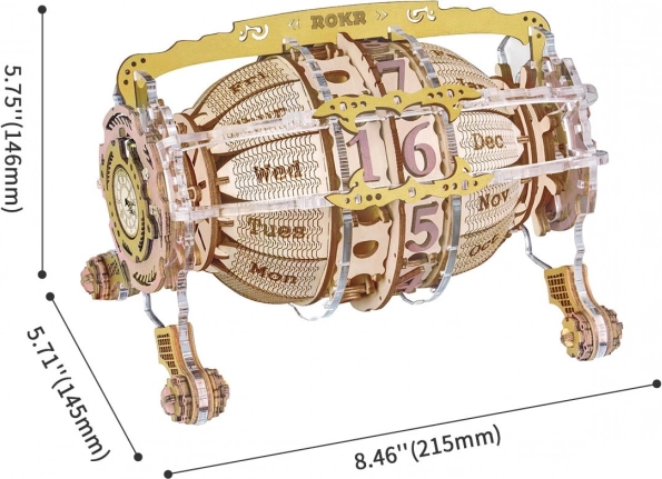 Krásně navržený kalendář s mechanickými pomůckami, které si můžete sami sestavit. Jsou to skutečné hodiny, které ukazují přesný čas. Pokud máte rádi řemeslo, bude to ideální volba do vašich sbírek. Bude to pro Vás výzva!