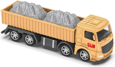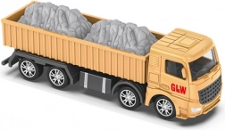 Robustní sklápěč s dlouhým otevřeným ložným prostorem a imitací kameniva podporuje hraní na staveništi. Detailní kabina, více náprav a lesklá kola zvyšují realističnost i zábavu.