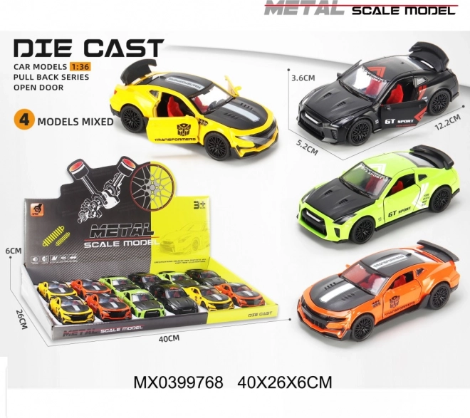 Objevte realistický kovový model sportovního auta v měřítku 1:36. Díky pevnému zpracování a otevíracím dveřím působí autíčko autenticky a skvěle padne do ruky. Funkce pull back se postará o svižnou jízdu – stačí natáhnout dozadu a vyrazit.