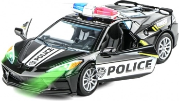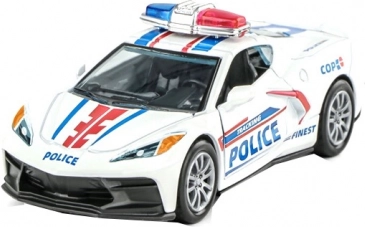 Realistické kovové policejní autíčko v měřítku 1:32 potěší malé i velké fanoušky zásahových vozů. Nabízí otevírací dveře, funkci pull back – natáhni a jeď a atraktivní světelný efekt. K dispozici jsou 2 různé designy.