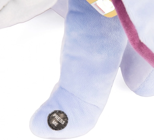 Tento roztomilý plyšový Oslík z řady Disney Classic přináší zábavu a spoustu radosti dětem i dospělým. Oslík má jemné fialové tělíčko, dlouhé uši a růžovou mašličku na ocasu. Stisknutím levé ručičky uslyšíte zvukové efekty, které potěší a rozesmějí každého.