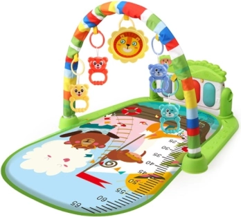 Objevte ideální hračku pro nejmenší: hrací podložku s hrazdičkou a piánem, která rozvíjí zrak, sluch i motoriku. Měkký materiál, veselé barvy, různé textury a zavěšená zvířátka podporují objevování a jemnou motoriku, zatímco interaktivní piáno s melodiemi podněcuje sluchové vnímání a první lásku k hudbě.