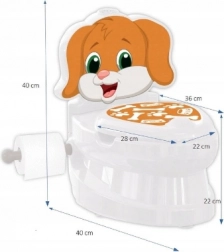Robustní plastová konstrukce je navržena pro každodenní používání a poskytuje dětem jistotu při sezení. Integrovaný držák na toaletní papír podporuje rozvoj správných hygienických návyků a přibližuje dětem používání skutečného WC.