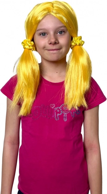 Staň se hvězdou jako oblíbené LOLLIPOPZ! Žlutá paruka s dvěma culíky dodá tvému outfitu energii a barvy. Snadno se nasazuje a skvěle drží, takže si užiješ tanec, zpěv i hraní bez starostí.