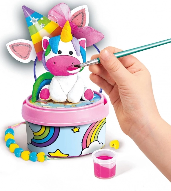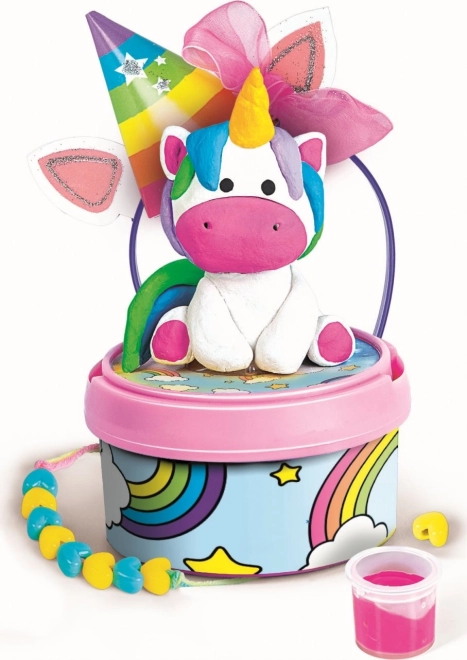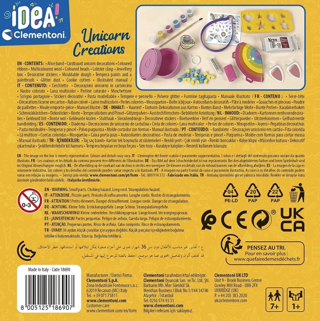 S kreativitou je svět hned barevnější! Tato kreativní sada umožňuje vyrobit roztomilou čelenku, náramek z korálků, šperkovnici nebo krabičku na drobnosti s figurkou jednorožce. Součástí sady je i barevná klíčenka s bambulkou. Podněcuje rozvoj kreativity, představivosti a manuální zručnosti.