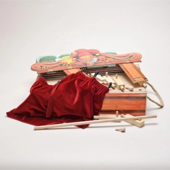 Krásně propracované loutkové divadlo je ideální pro děti od 3 let. Toto divadlo obsahuje 8 dřevěných loutek a čtyři oboustranné kulisy, které přinášejí kouzlo pohádek do dětského pokoje. Loutky se mohou lišit v barevných detailech, což přidává na autentičnosti. Sestava zahrnuje: