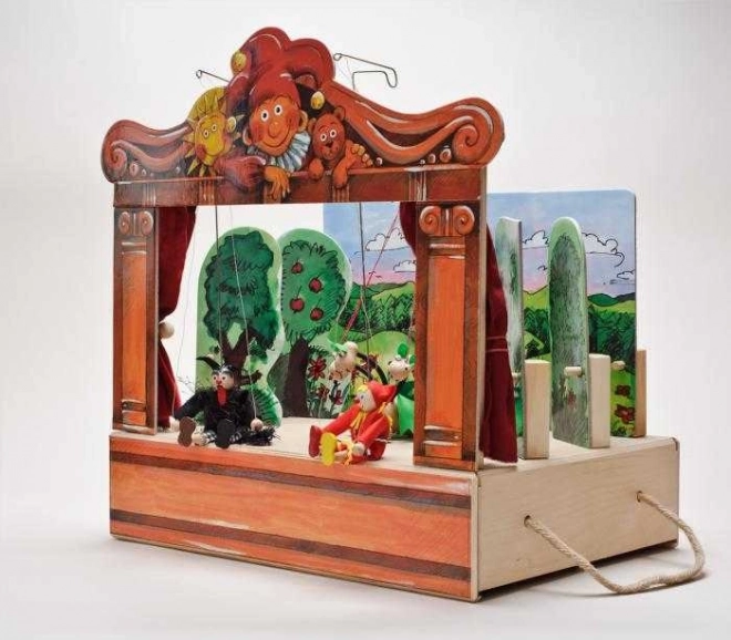 Nádherně propracované detaily dřevěného divadla vytvářejí pohádkovou atmosféru, která vtáhne děti do kouzelného světa.