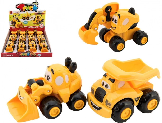 Dostupné jsou 3 různé druhy stavebních vozidel, které podněcují dětskou fantazii a rozvoj jemné motoriky. Díky kompaktní velikosti cca 9 cm se autíčka snadno vejdou do batůžku a jsou ideální na hraní doma i na cestách.