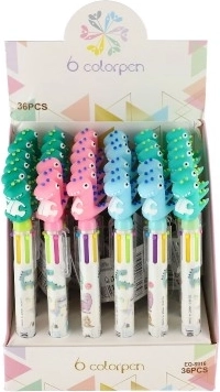 Zábavné vícebarevné pero s motivem dinosaura přináší psaní plné barev a radosti. Uvnitř skrývá 6 inkoustových barev, které lze snadno přepínat jedním stiskem. Děti si ho zamilují do školy i na doma díky hravému designu a praktickému ovládání.