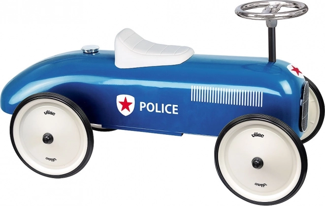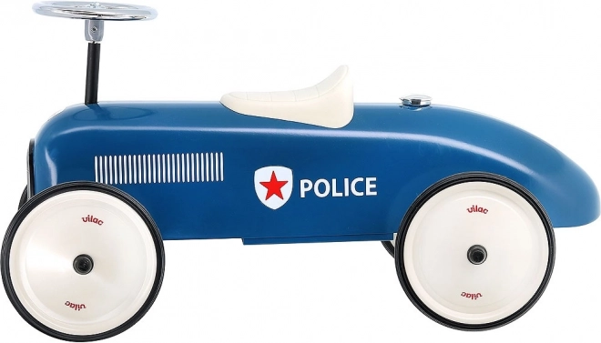 Užijte si zábavu s modrým odrážedlem Vilac ve stylu policejního auta. Toto odrážedlo je zcela kovové, což zaručuje vysokou odolnost a stabilitu. Díky pogumovaným kolům má velmi tichý chod, a to i na pevném povrchu. Je vybaveno volantem, který zajišťuje snadné řízení.