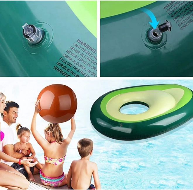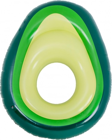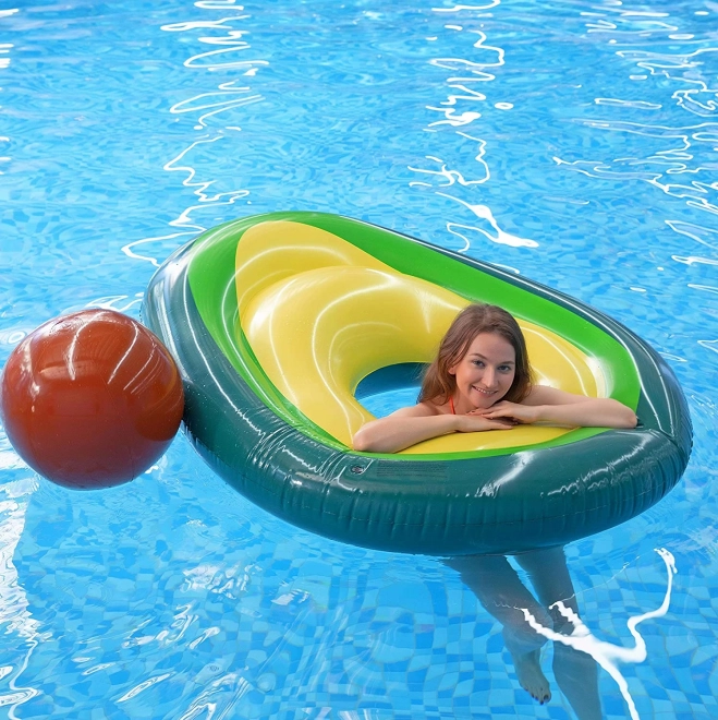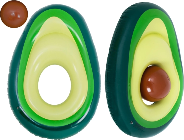 Originální lehátko ve tvaru zralého avokáda rozzáří každý bazén i pláž. Odnímatelná „pecka“ funguje jako samostatný míč do vody i na plážové hry, anebo jako polštář/opěrka při lenošení na vodě. Otevřený střed promění lehátko v stabilní kruh pro relax i učení plavání.