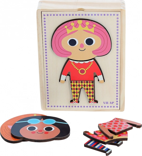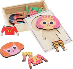 Oblékací puzzle Jade s 6 různými outfity umožňuje dětem vytvářet nesčetné kombinace a rozvíjet svou kreativitu a motoriku. Obsahuje 18 dílků v praktické krabičce.