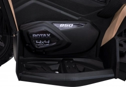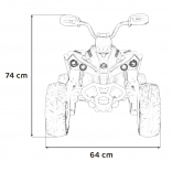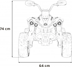 Čtyřkolka Maverick ATV je stvořená pro dobrodružství. Dvojice motorů 2 × 200 W v kombinaci s 24V akumulátorem zajišťuje plynulý rozjezd a dostatek síly do mírného terénu i na zpevněné cesty. Velká kola z EVA pěny s ložisky skvěle tlumí vibrace a mají jistý záběr. Kompletní odpružení (2× předek, 2× zadek) s vylepšenými zadními pružinami zvyšuje komfort a stabilitu.