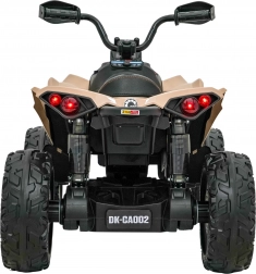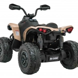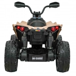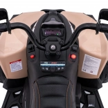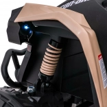 Robustní dětská elektrická čtyřkolka Maverick ATV v khaki barvě nabídne malým jezdcům skutečný off‑road zážitek. Dva silné motory 2 × 200 W, výkonná baterie 24 V / 5 Ah, velká EVA kola s ložisky a plné odpružení 4× se postarají o plynulou a bezpečnou jízdu. Nechybí LED světla vpředu i vzadu, měkké sedlo z ekokůže a bohatý audio panel s Bluetooth, MP3, USB a FM rádiem.