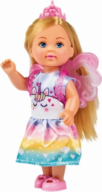 Objevte kouzelný svět s panenkou Evi Love Unicorn Fairy. Díky pestrobarevným šatičkám s motivem jednorožce, třpytivé korunce a odnímatelným křídlům si děti snadno vytvoří vlastní příběhy plné fantazie. Kompaktní velikost 12 cm z ní dělá skvělou společnici do batůžku i na cesty.