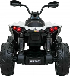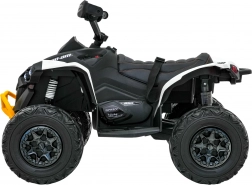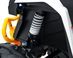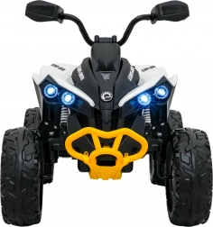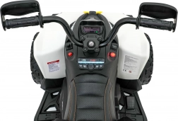 Objevte zábavu na zahradě i v parku s dětskou elektrickou čtyřkolkou MAVERICK ATV v bílé barvě. Dva motory 2 × 200 W, baterie 24 V / 5 Ah a velká EVA kola s ložisky zajišťují plynulou a pohodlnou jízdu. Nechybí LED světla vpředu i vzadu, komfortní sedlo z ekokůže a bohatý audio panel s Bluetooth, MP3, FM rádiem a USB/AUX pro oblíbené songy.