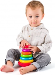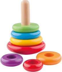 Tato hračka spojuje dva vynikající způsoby zábavy - jako pyramida a káča. Děti navlékají různobarevné dřevěné kroužky na tyčku od největšího po nejmenší a zároveň rozvíjejí kreativitu a jemnou motoriku. Kromě toho lze hračku roztočit jako káču, což přidává další úroveň zábavy.