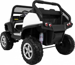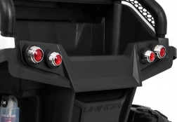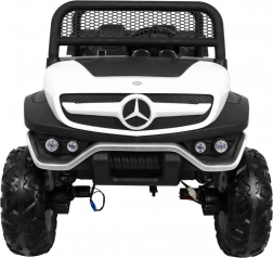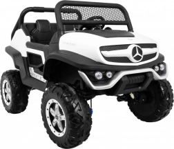 Mercedes‑Benz UNIMOG je ikonické off‑road autíčko pro dvě děti se sedadlem z ekokůže a bezpečnostními pásy. Díky přepínatelnému pohonu 2×4 / 4×4, velkým EVA kolům (Ø 37 × 14 cm) a zadním tlumičům s regulací zvládne zahradu, dlažbu i lehký terén. Plynulý rozjezd, jízdní směry vpřed/vzad a vysoký průjezdní světlá výška 27 cm zaručují jistotu a pohodlí.