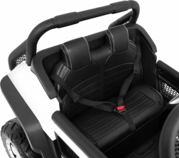 Velkokapacitní baterie 12 V / 14 Ah poskytne dlouhé ježdění, zatímco rodičovský ovladač 2.4G s volbou 3 rychlostí a nouzovým STOP tlačítkem drží vše pod kontrolou. Děti potěší LED světla vpředu i vzadu, otevírací dveře, zadní úložný prostor a multimediální panel s Bluetooth, USB, MicroSD, AUX (možnost mikrofonu), MP3 a FM rádiem.