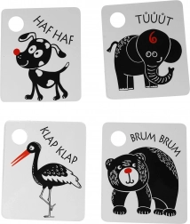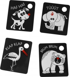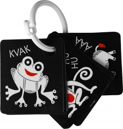 Každá kartička má praktický otvor pro zavěšení na postýlku, kočárek či hrazdičku a součástí balení je odolný plastový kroužek pro snadné propojení celé sady. Kvalitní české materiály zajišťují dlouhou životnost a bezpečné používání.