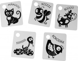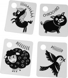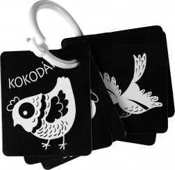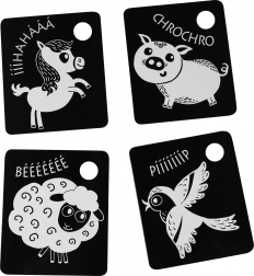 Kontrastní černobílé kartičky jsou ideální pomůckou pro novorozence a kojence, jejichž zrak nejlépe reaguje na jednoduché tvary a vysoký kontrast. Díky praktickému otvoru a plastovému kroužku lze kartičky snadno zavěsit nad postýlku, na kočárek nebo je spojit do přehledného setu.