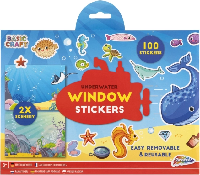 Kreativní set okenních samolepek se stovkami samolepek a dvěma scenériemi vám umožní vytvořit si svůj originální obrázek. Samolepky lze snadno přemisťovat a aplikovat na různé povrchy včetně oken.