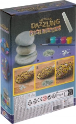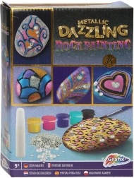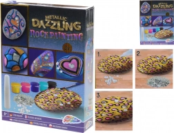 Vytvářejte jedinečné dekorace a dárky s lesklými metalickými efekty. Sada je vhodná pro začátečníky i pokročilé – jednoduše otevřete barvy, popusťte uzdu fantazii a ozdobte přírodní kameny originálními vzory. Díky třpytkám a samolepicím kamínkům docílíte působivého výsledku během chvilky.