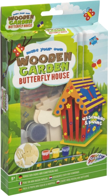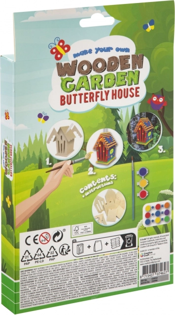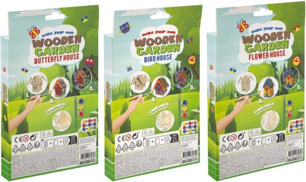 Sada obsahuje všechny potřebné nástroje – předřezané dřevo, barvy a štětec, což umožňuje okamžité tvoření bez nutnosti dalších pomůcek.