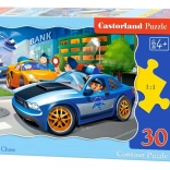 Tato sada puzzle je ideální pro malé začátečníky. Díky větším dílkům a jasným barvám si děti snadno poradí se skládáním, zatímco trénují jemnou motoriku, trpělivost a koncentraci. Motiv policejní honičky přináší do hry akci a napětí, které děti baví.