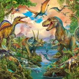 Zábavné puzzle s motivem pravěkých tvorů potěší malé milovníky dinosaurů. Balení obsahuje 150 dílků a jako bonus dětské tetovačky. Ideální pro děti od 7 let, rozměr složeného obrázku je přibližně 43,2 × 29,1 cm.