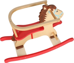 Tento roztomilý houpací koník v přírodním dřevě s červenými lyžinami je ideální pro první „vyjížďky“. Pečlivě broušené a lakované dřevo je příjemné na dotek a snadno se udržuje, zatímco opěrný kroužek a zadní opěrka udrží malého jezdce bezpečně v sedle.