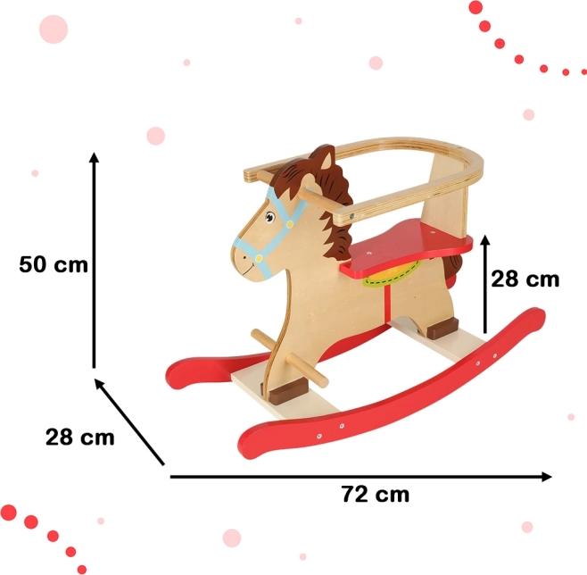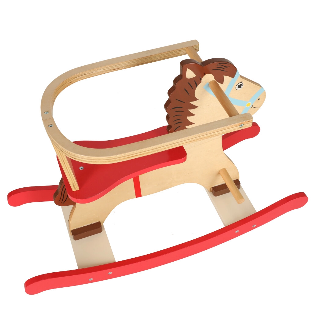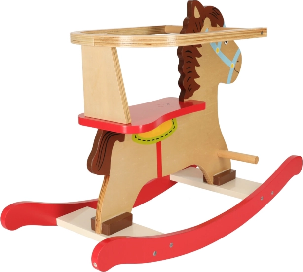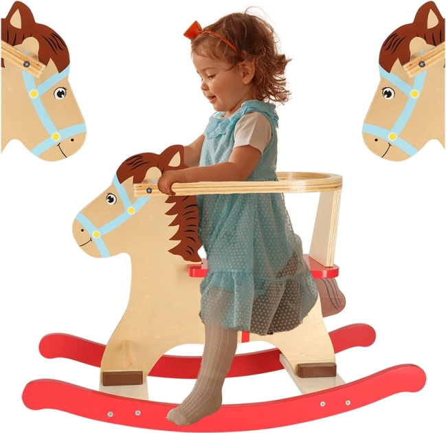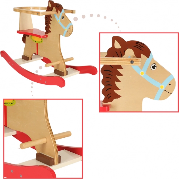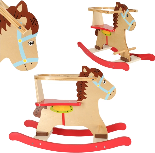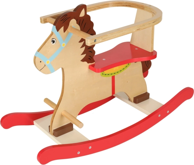 Klasický dřevěný houpací koník s bezpečnostní opěrkou a madly přináší dětem od 12 měsíců hodiny radostné hry. Díky robustní konstrukci z překližky, stabilním lyžinám a praktickým stupačkám je jízda bezpečná, pohodlná a skvěle rozvíjí rovnováhu a koordinaci.
