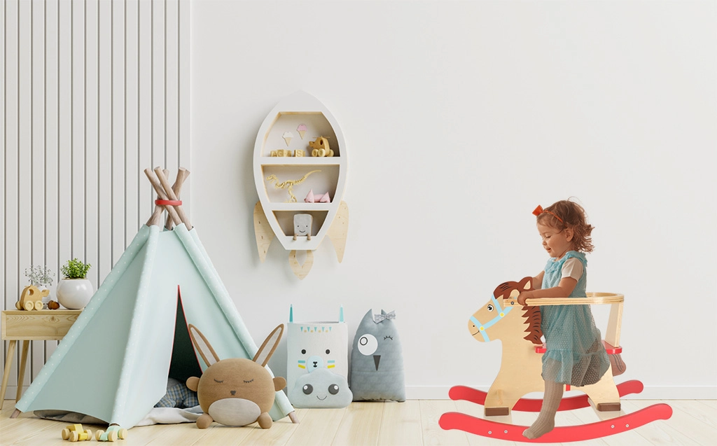 Houpání podporuje motorický rozvoj, posiluje svaly středu těla a přirozeně uklidňuje. Praktické madla a stupačky zvyšují jistotu při nasedání i jízdě. Díky nadčasovému designu se koník hodí do každého dětského pokoje a stane se oblíbeným společníkem na dlouhé roky.