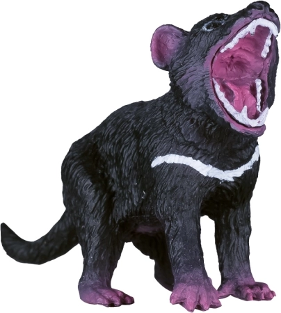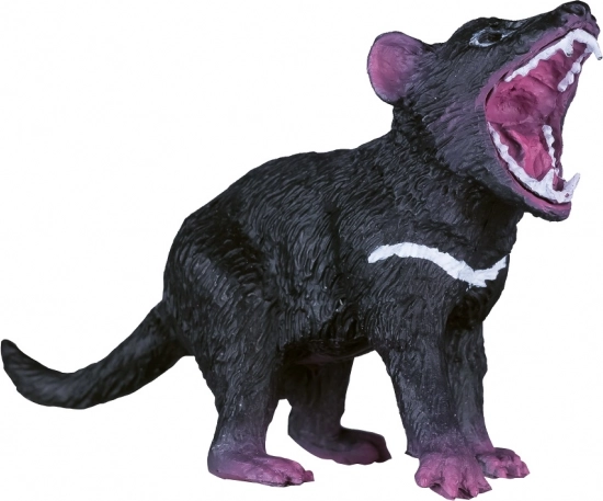Tato detailní figurka zobrazuje tasmánského čerta v typickém postoji s otevřenou tlamou a výraznou texturou srsti. Díky ručnímu malování vynikají autentické barvy i drobné detaily, které podporují vzdělávací hru a poznávání přírody.