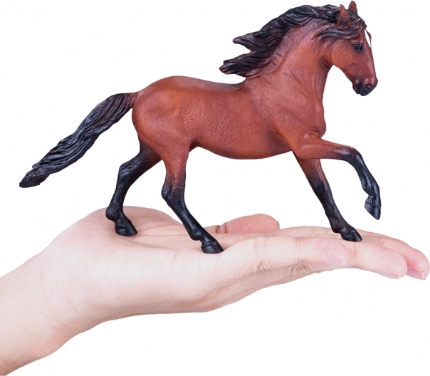 Tato realistická figurka lusitánského koně zaujme precizním zpracováním, dynamickým postojem a autentickým hnědým zbarvením s černou hřívou a ocasem. Je ideální pro dětské hraní, vzdělávání i jako doplněk sbírky zvířecích modelů.