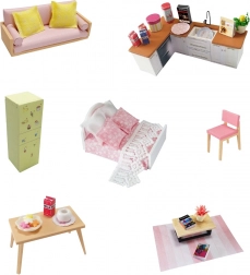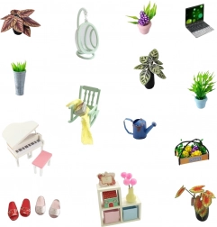 Součástí vybavení jsou miniaturní kusy nábytku, které dodají domku realistický vzhled.
