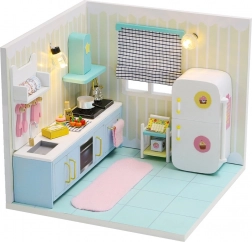 Tato miniatura domečku Veselá kuchyňka oživuje váš výtvarný a stavitelský cit svými půvabnými detaily. Každá stavebnice pochází v rozloženém stavu a je dodávána s LED osvětlením, které vyžaduje dvě AAA baterie (nejsou součástí balení). Díky ochraně v podobě plexiskla máte jistotu, že váš výtvor bude bezpečný.