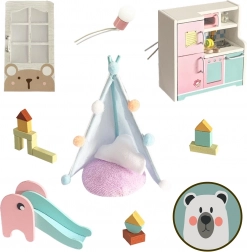 Sestavte si vlastní dětský pokoj s mini kuchyňkou, skluzavkou a bloky. Tato miniatura je ideální pro rozvoj dětské fantazie a kreativního myšlení.