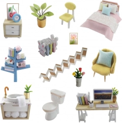 Miniaturní domeček Dům klidných chvil potěší všechny milovníky tvoření a detailů. V balení najdete dřevěné, papírové a textilní díly, ze kterých krok za krokem sestavíte realistické místnosti s nábytkem, doplňky a funkčním LED osvětlením. Výsledek se stane krásnou dekorací poličky, pracovního koutku nebo dětského pokoje.