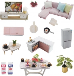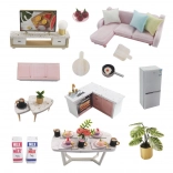 Obývací kout, jídelna, kuchyň i ložnice s miniaturním nábytkem a dekoracemi vytvářejí uvěřitelný a působivý celek.