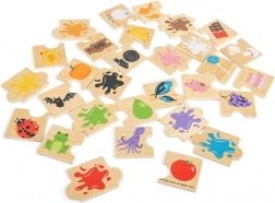 Zábavné dřevěné didaktické puzzle od Bigjigs Toys učí děti rozpoznávat barvy pomocí 30 dílků v 10 barvách. Spojují trojice (zvíře, předmět, barva), trénují koordinaci ruka-oko, logické myšlení a rozšiřují slovní zásobu. Vhodné pro děti od 2 let.