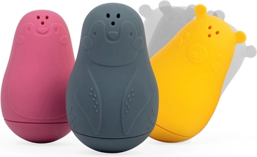 Roztomilý tučňák, lední medvěd a tuleň promění každé koupání v zábavnou hru. Stačí naplnit vodou, zmáčknout a sledovat vodní proud z tří horních otvorů. Díky měkkému, ale odolnému 100% silikonu jsou hračky příjemné na dotek, bezpečné pro děti a šetrnější k životnímu prostředí.