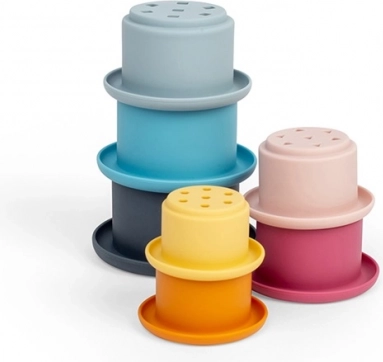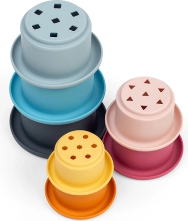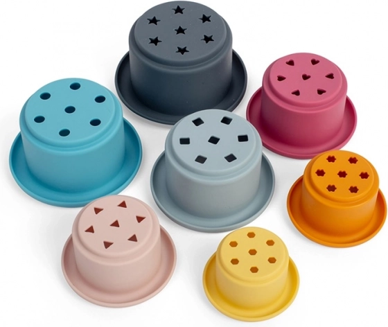 Silikonové stohovací kelímky BIGJIGS TOYS jsou univerzální hračka do vody, na pláž i do dětského pokoje. Sedm různě velkých kelímků lze skládat na sebe i do sebe a díky perforovaným dýnům si děti užijí zábavné přelévání a cákání s efektem malého vodopádu.