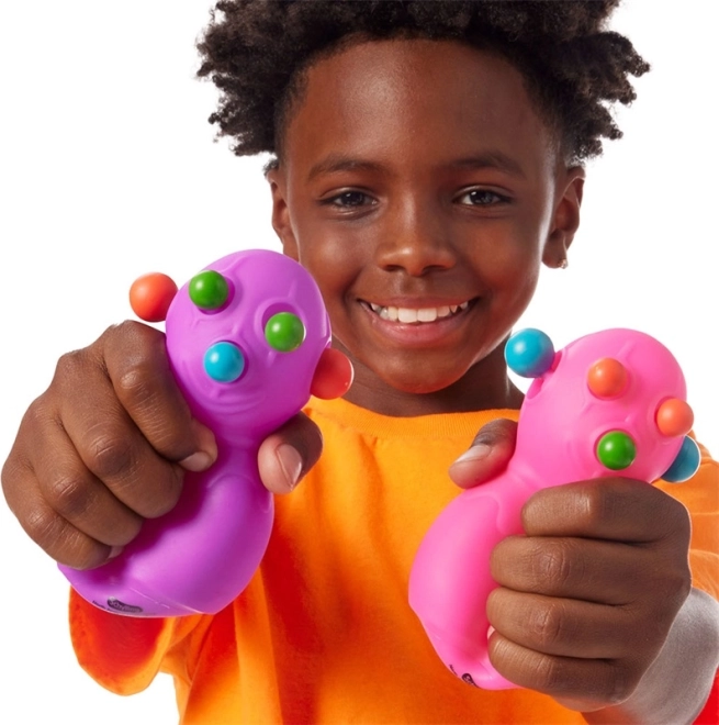 Tento smyslový „fidget“ spolehlivě pomáhá ke zklidnění, udržení pozornosti a soustředění při učení i na cestách. Vnější část tvoří příjemná termoplastická guma, uvnitř je PVA (polyvinylalkohol) – oba materiály jsou netoxické a bezpečné pro děti.